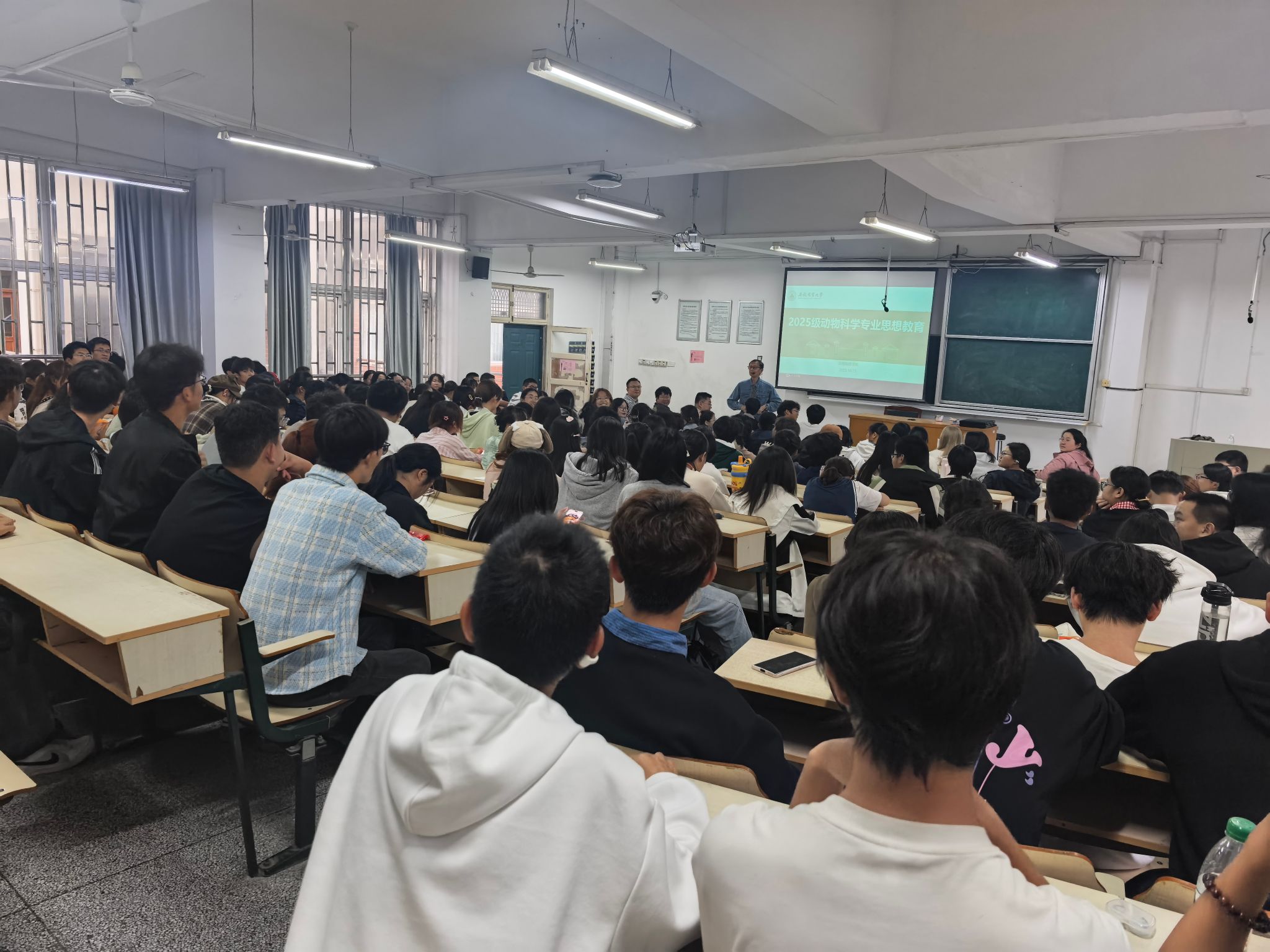 专业思想教育首在“明理”。学院在开学典礼后,迅速启动“专家教授话专业”系列讲座,邀请安徽省畜牧兽医终身成就奖获得者、全国知名专家张伟力教授、动物营养与饲料科学系主任张成教授,为新生系统阐释动物科学的学科体系、前沿动态与战略价值,将专业内涵从传统养殖拓展至生命科学、智慧畜牧、粮食安全等国家战略层面,帮助新生打破认知局限,树立专业自豪感与使命感。