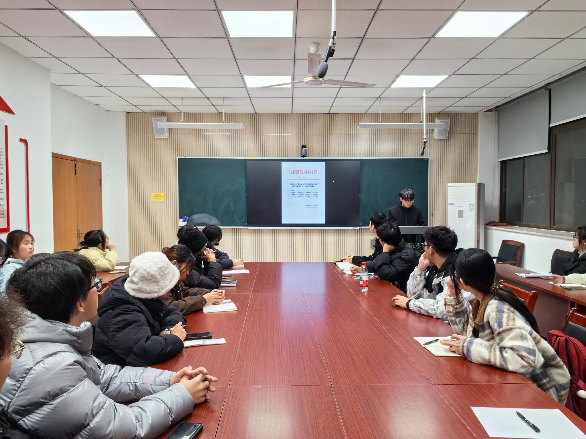 在青年宣讲环节,学院青年宣讲团成员带领全体与会人员,系统学习了《安徽农业大学青年志愿者工作管理暂行办法》《安徽农业大学青年志愿者工作细则》以及《安徽农业大学星级志愿者评定办法》等系列文件。宣讲结合学校实际,对青年志愿者工作的组织管理、服务规范及激励评价机制进行了详细阐释,为各团支部规范、有效地开展志愿服务工作提供了清晰的指引。