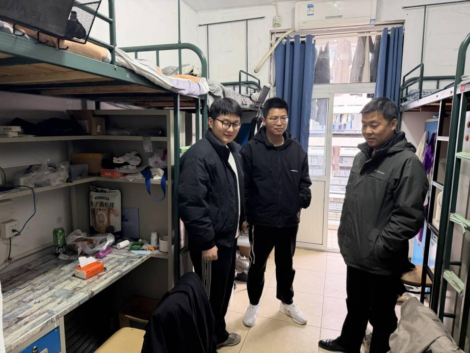 走访过程中,学院领导和辅导员老师们深入每一间宿舍,与同学们进行了亲切友好交流。对即将面临人生重要选择的应届毕业生,走访小组给予了重点关怀。学院领导与辅导员们细致询问了考研学子的复习进度与心理状态,了解求职学生的应聘进展与职业规划,并认真倾听、记录了大家在考研、求职过程中遇到的“急难愁盼”问题。学院领导们表示学校和学院非常重视升学就业工作,勉励考研学子坚定信心、科学备考,祝福求职同学顺利拿到人职匹配的录用通知,并表示学院将整合资源、搭建平台。对于非应届的本科生和研究生,老师们同样给予了高度关注,细致了解了他们的课程学习、科研进展、校园生活适应情况及未来发展规划,鼓励低年级同学打好专业基础,引导高年级同学积极参与科创实践,实现全面发展。