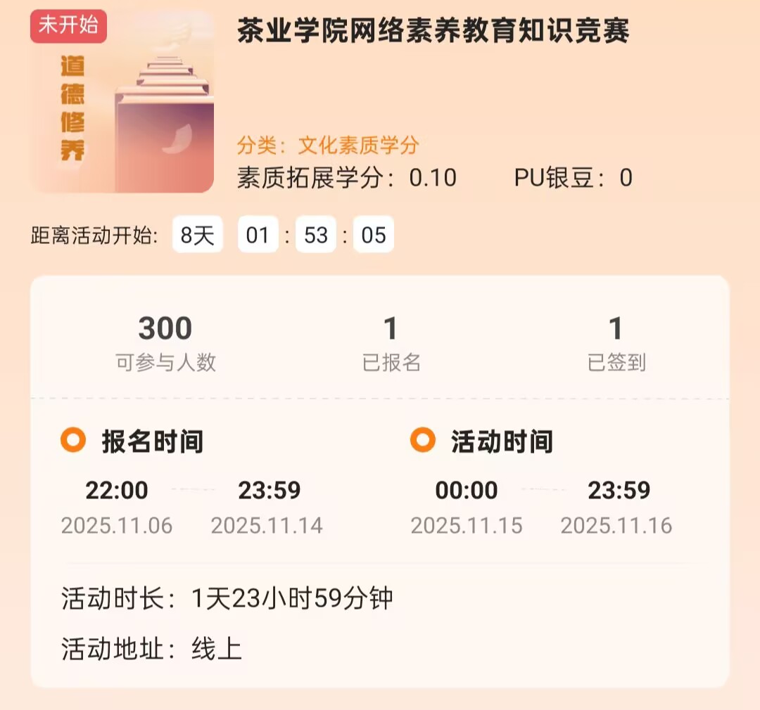 此次网络素养教育知识竞赛的成功举办,有效激发了学子学习网络文明知识的主动性,帮助学生进一步明确网络行为边界,提升网络安全防范能力与法治意识,为茶文化的健康线上传播奠定了坚实基础。茶业学院将以此为抓手,持续深化网络文明教育,将网络素养培养与茶学专业人才培养相结合,引导广大学生合理运用网络资源赋能专业学习与职业发展,共同打造清朗有序、兼具茶香特色的校园网络空间,让网络文明之风吹拂茶苑、助力学子成长成才。(文图:金傲伟 初审:沈周高 复审:姜家生 终审:张旭念)