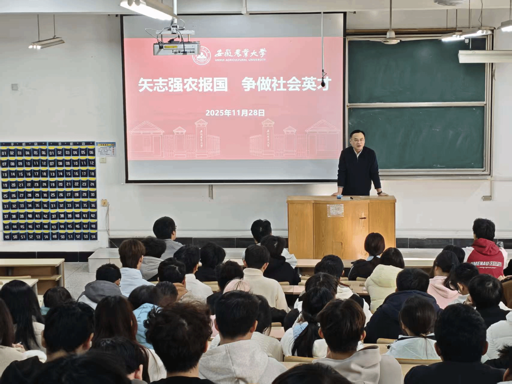 本网讯 为深入学习宣传贯彻党的二十届四中全会精神,扎实推进“大思政课”建设内涵式发展,11月28日下午,校党委副书记、校长操海群以《矢志强农报国 争做社会英才》为主题,为植物保护学院2025级本科生上了一堂生动的思想政治理论课,勉励植保学子深刻把握时代方位,增强使命担当,筑牢信仰根基。课程由院党委书记刘柳主持。
