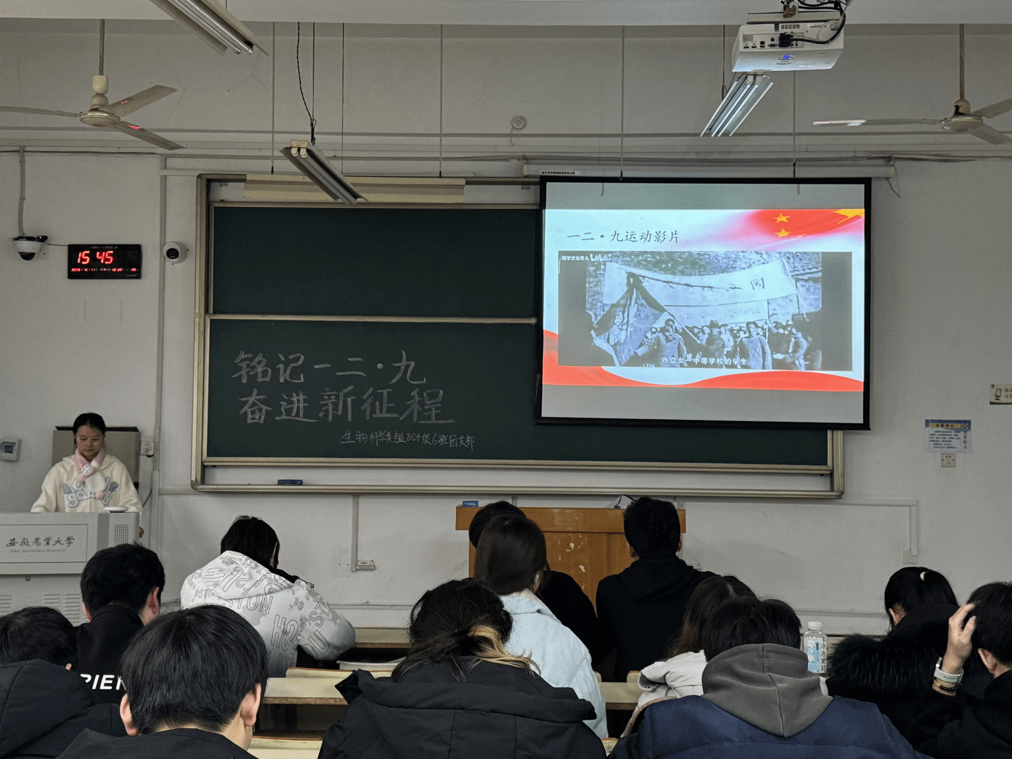活动中,各团支部通过集体学习、主题分享、影像回顾等多种形式,重温1935年北平青年学生投身救亡图存的历史场景,深刻感悟那一代青年在民族危难之际所展现的爱国赤诚与历史担当。现场气氛庄重肃穆,学子们凝神聆听,在历史回望中接受精神洗礼。