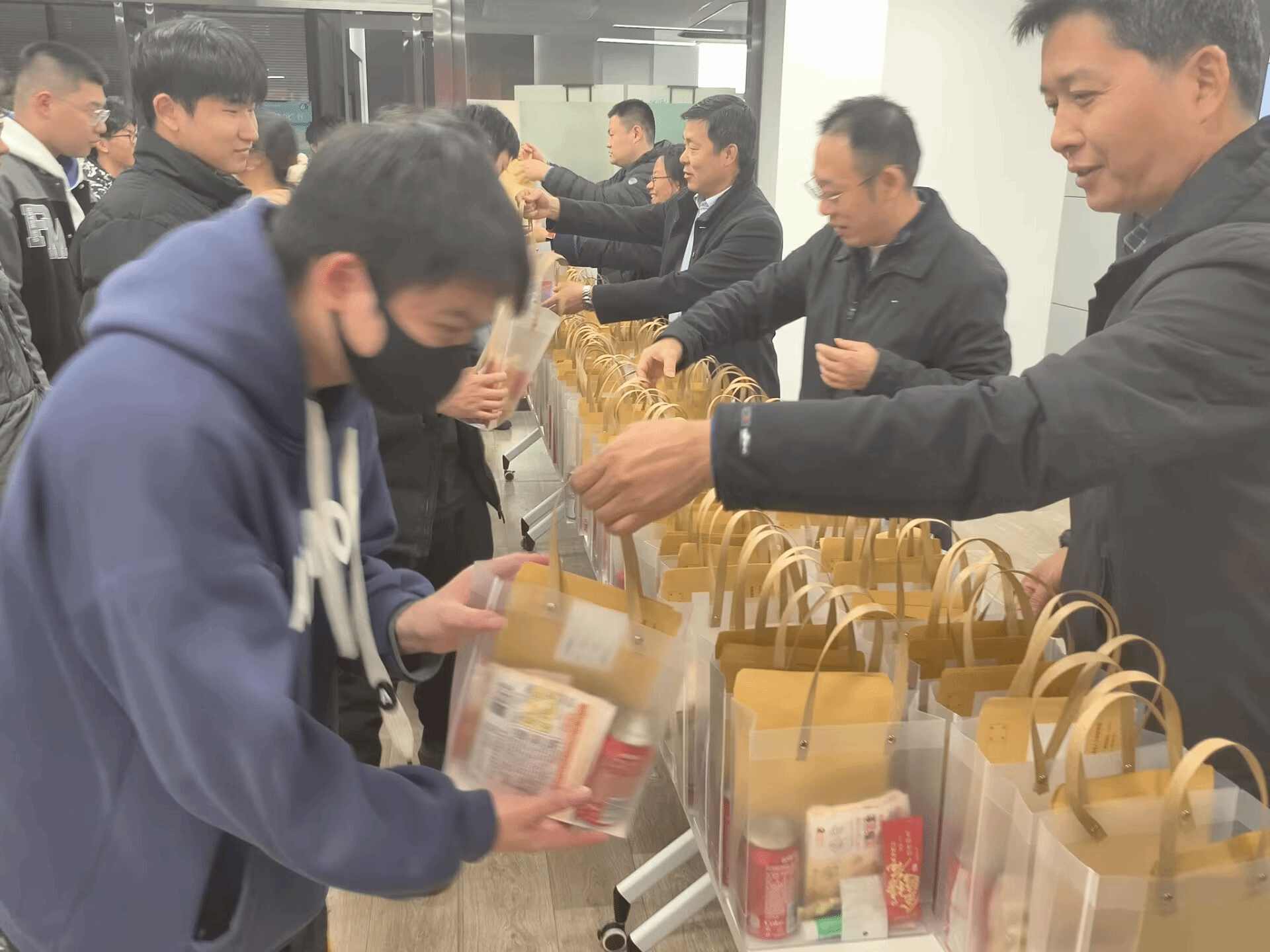暖心启程,师生携手送祝福。活动当天,学院领导与老师们亲自将一份份满载心意的加油包递到学生手中,并与同学们亲切交流,细心询问备考状态与生活情况,叮嘱大家注意防寒保暖、劳逸结合,以稳定的心态和健康的身体迎接挑战。学生党员和入党积极分子们积极承担了物品的分装与发放工作,用实际行动践行服务精神,将温暖传递到每一位同学心中。