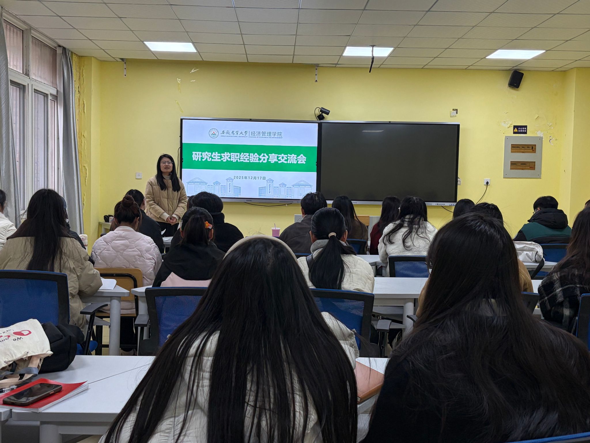 12月17日下午,研究生求职经验分享交流会在经管楼102会议室顺利举行。活动邀请到学院就业指导老师,结合自身求职经历,从简历制作技巧、岗位投递策略、面试经验总结、职业规划选择等方面进行分享。老师们还结合经管类专业就业特点,针对国企招聘、选调生考试、企业校招等不同求职方向,为在场学子提供针对性建议。互动环节中,同学们就求职过程中遇到的困惑积极提问,老师们的真诚分享为即将步入职场的研究生们点亮了求职路上的明灯。