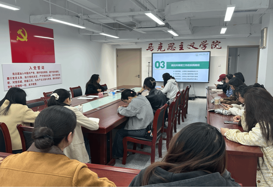 本网讯 为深入推动高校共青团工作创新发展,进一步凝聚青春力量、服务青年成长, 4月3日上午,我院邀请校团委副书记柳洁在学院1010会议室开展团学专题辅导。本次会议由校团委副书记柳洁主讲,学院团学负责老师、专职辅导员和主要学生骨干参加此次会议。