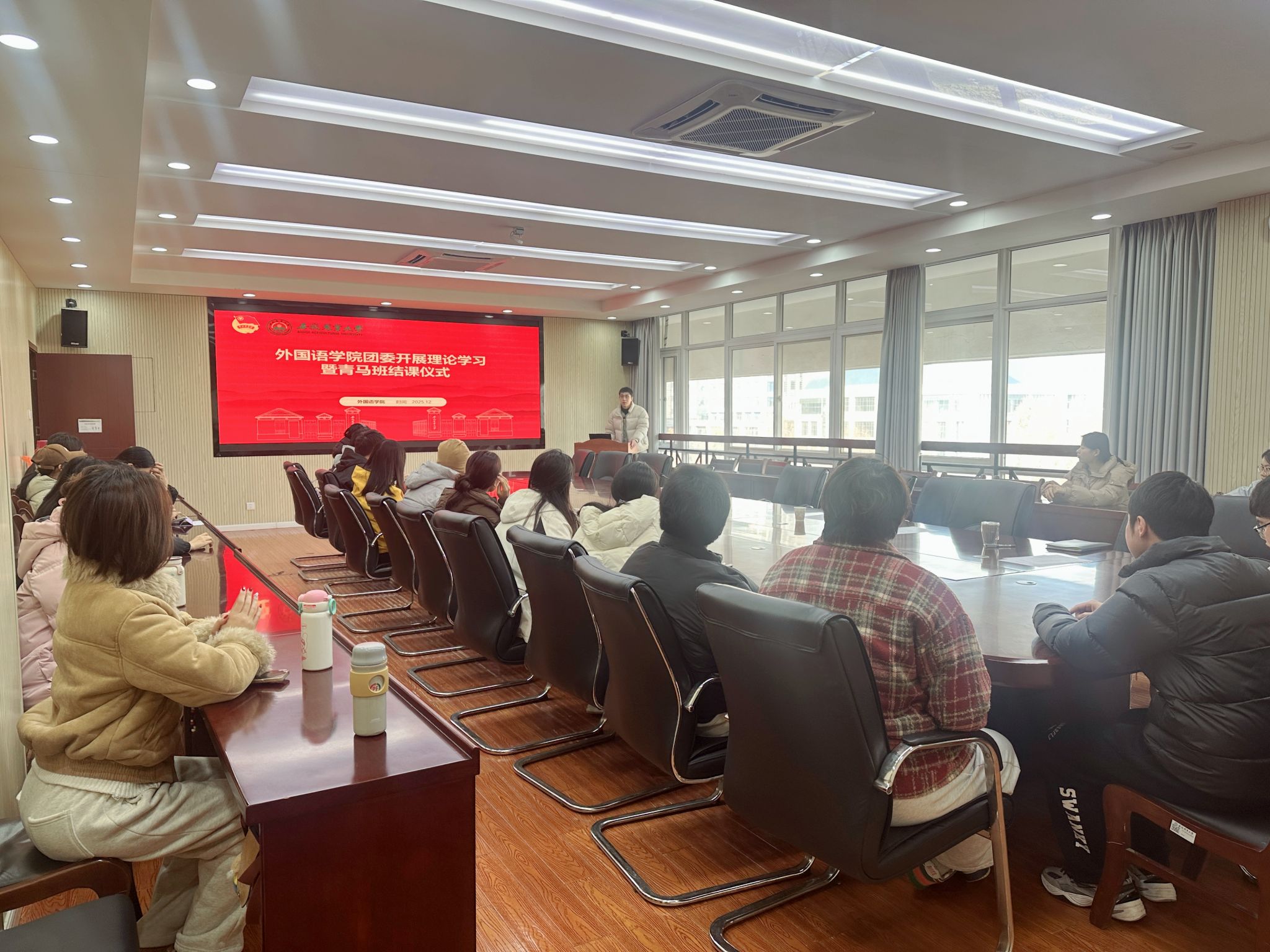 本网讯 12月25日,外国语学院团委在外语楼506会议室开展理论学习暨青马班结课仪式。青马班全体学员、学院团委负责人及指导老师参与活动,为本次培训画上圆满句号。