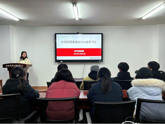 本网讯 12月24日下午,农学院在朝阳楼212会议室开展团委理论学习中心组学习会议,深入领会2025年中央工作会议精神,学习《中国共产主义青年团纪律处分条例(试行)》,学院团学主要学生干部参加本次会议。