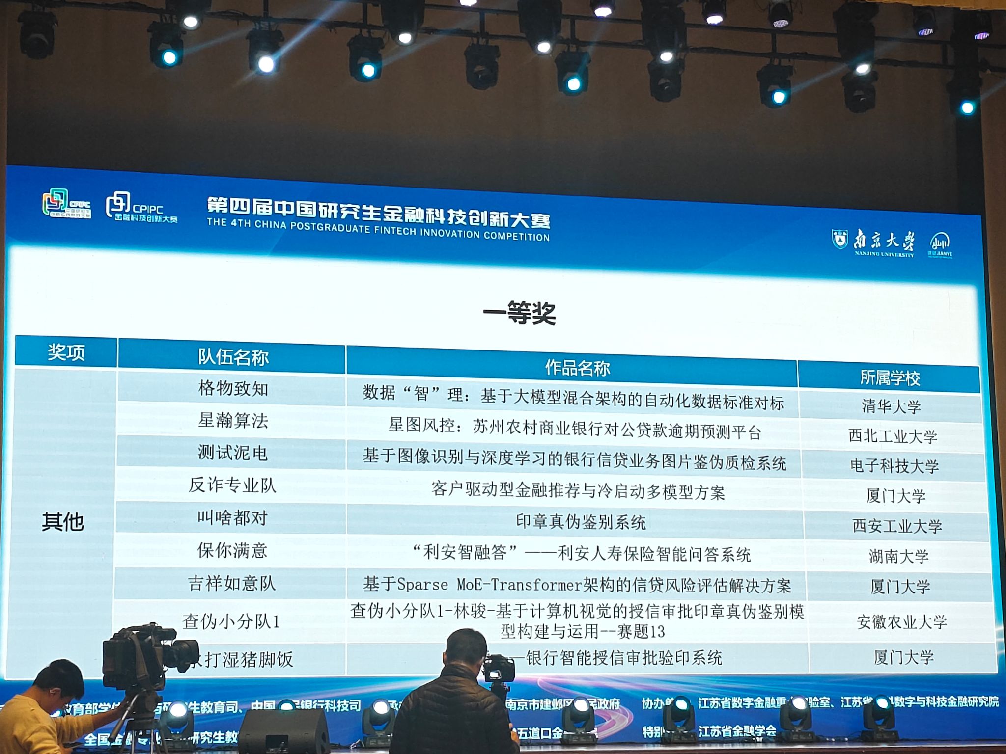 本届大赛在中华人民共和国教育部、中国人民银行科技司和全国金融专业学位研究生教育指导委员会指导下,由南京大学与南京市建邺区人民政府联合承办。大赛围绕金融科技创新主题,旨在充分激发高校青年学子创新精神,推动金融科技发展,服务国家科技金融、绿色金融、普惠金融、养老金融、数字金融“五篇大文章”。赛事共吸引来自全国226所高校和科研院所的1377支队伍8000余名选手踊跃参与,经多轮筛选,112支优秀团队进入决赛阶段激烈角逐,最终评出一等奖12项、二等奖20项、三等奖185项。