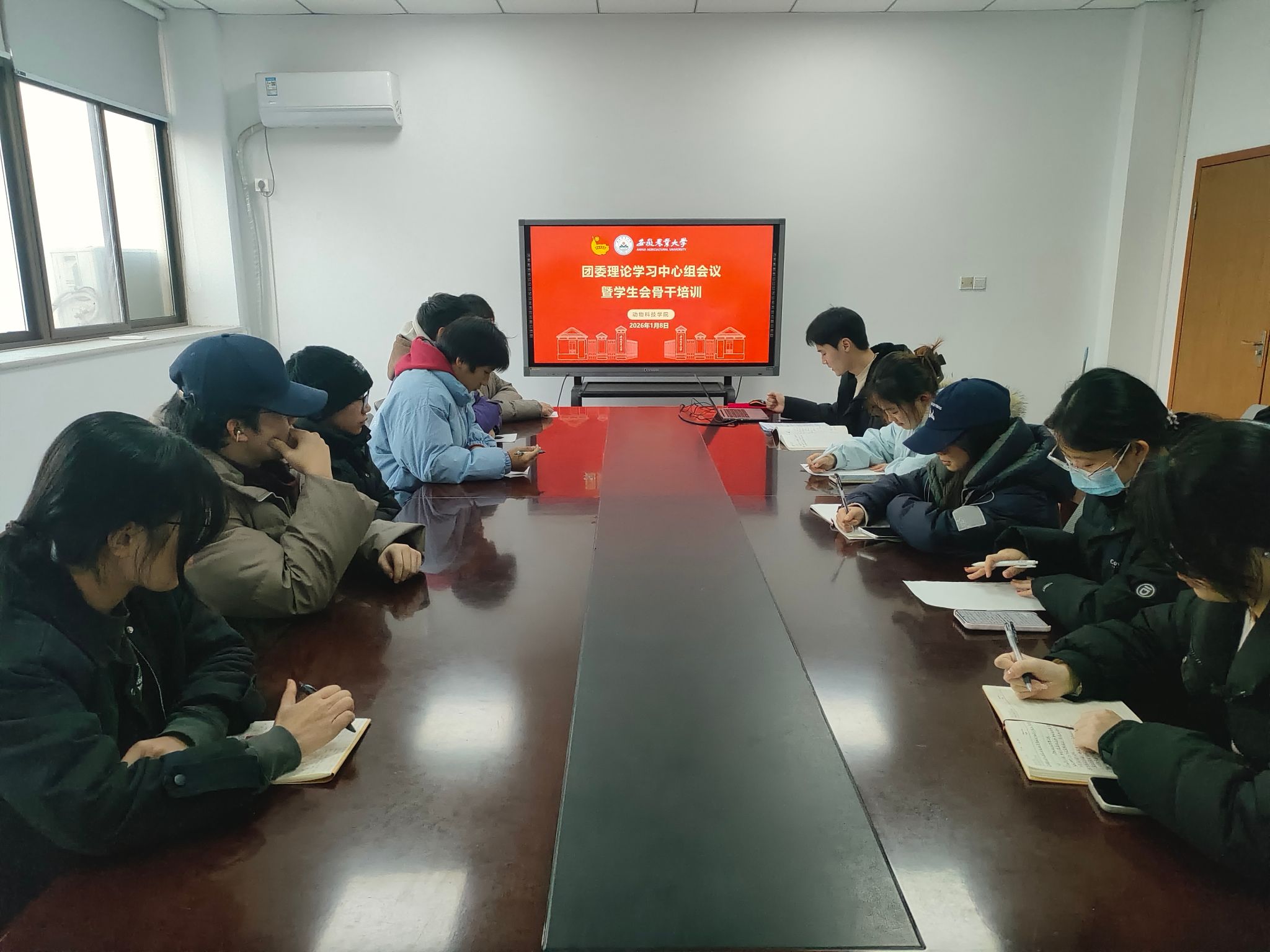 本网讯 1月8日下午,学院在动科楼308会议室召开团委理论学习中心组会议暨学生会骨干培训。学院团委理论学习中心组成员、学生会骨干参加会议,会议由学院团委负责老师主持。