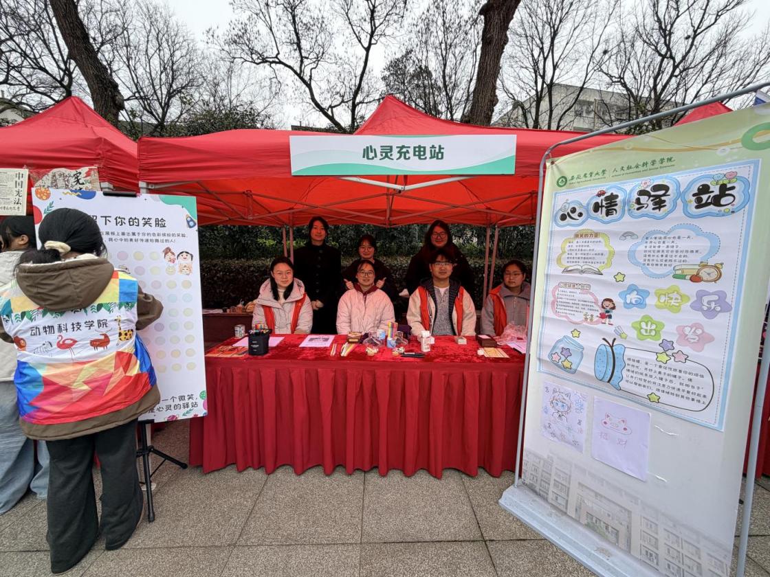 本网讯 3月5日,在第63个“学雷锋纪念日”到来之际,我校“青春志愿行 奋进十五五”志愿服务集市在欣苑西侧广场举行。人文学院心联会与应用心理学专业学生党支部联合设立“心灵充电站”特色展位,发挥专业优势,为师生提供心理服务。