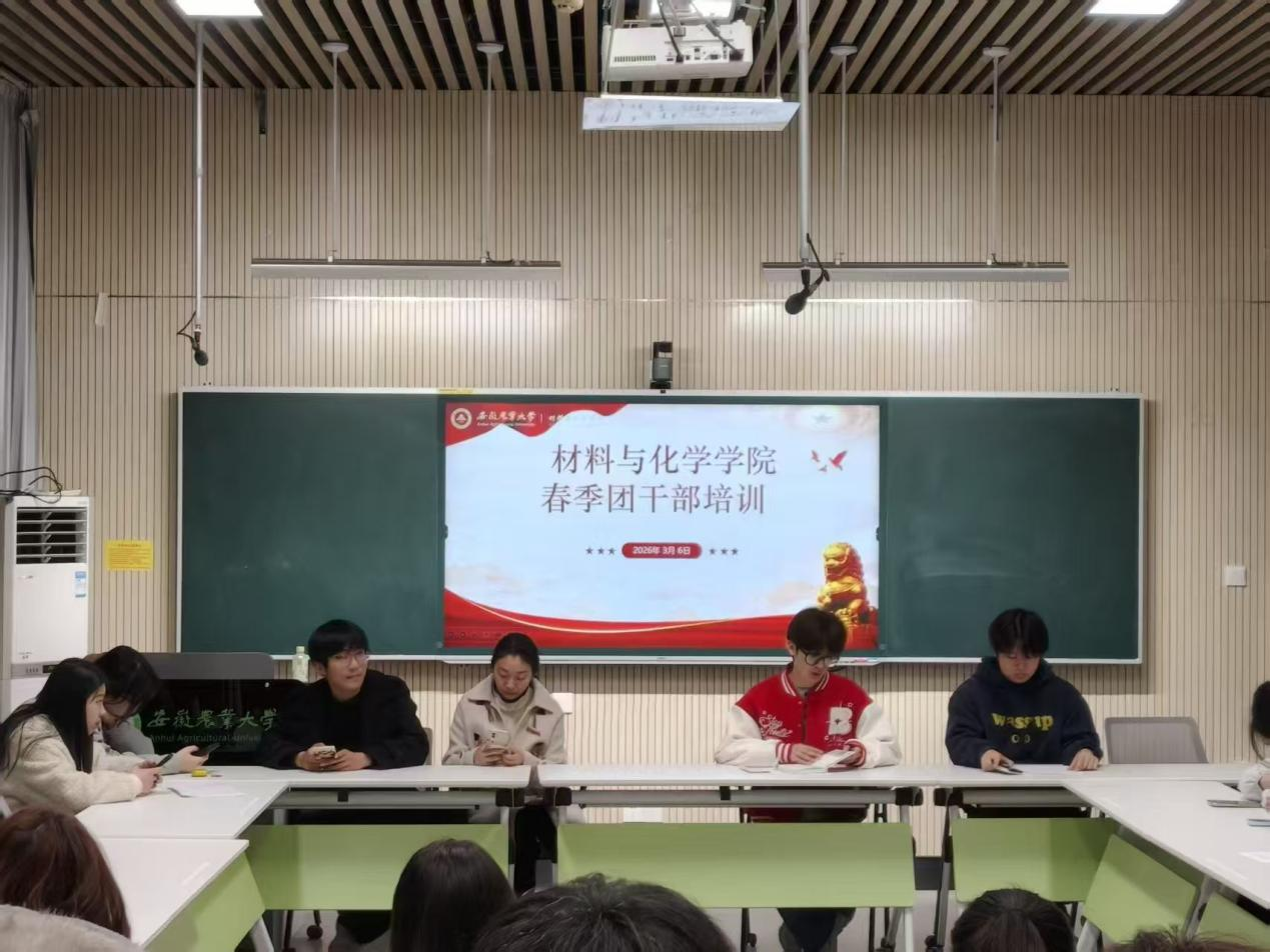 此次春季团干部培训,有效提升了团干部的政治素养、理论水平和业务能力,为夯实基层团组织基础、凝聚青年力量、推动共青团工作高质量发展奠定了坚实基础。下一步,材料与化学学院团委将以此次培训为契机,持续加强团干部队伍建设,引领广大青年坚定理想信念,勇担时代使命,在学习、工作与社会实践中展现青春担当、贡献青春力量。(文:张洪月 图:任静雯 初审:夏成云 复审:夏文秀 终审:陈公伟)