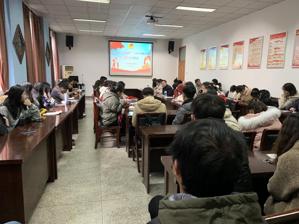 本网讯 1月2日,茶与食品科技学院举办第三届“捷迅杯”大学生创客大赛培训动员会。学院党委副书记、纪委书记、副院长张国学、各专业团支部书记、科创委员、学科竞赛获奖学生代表以及对创新创业感兴趣的部分同学参加了会议。会议由学院团委老师主持。