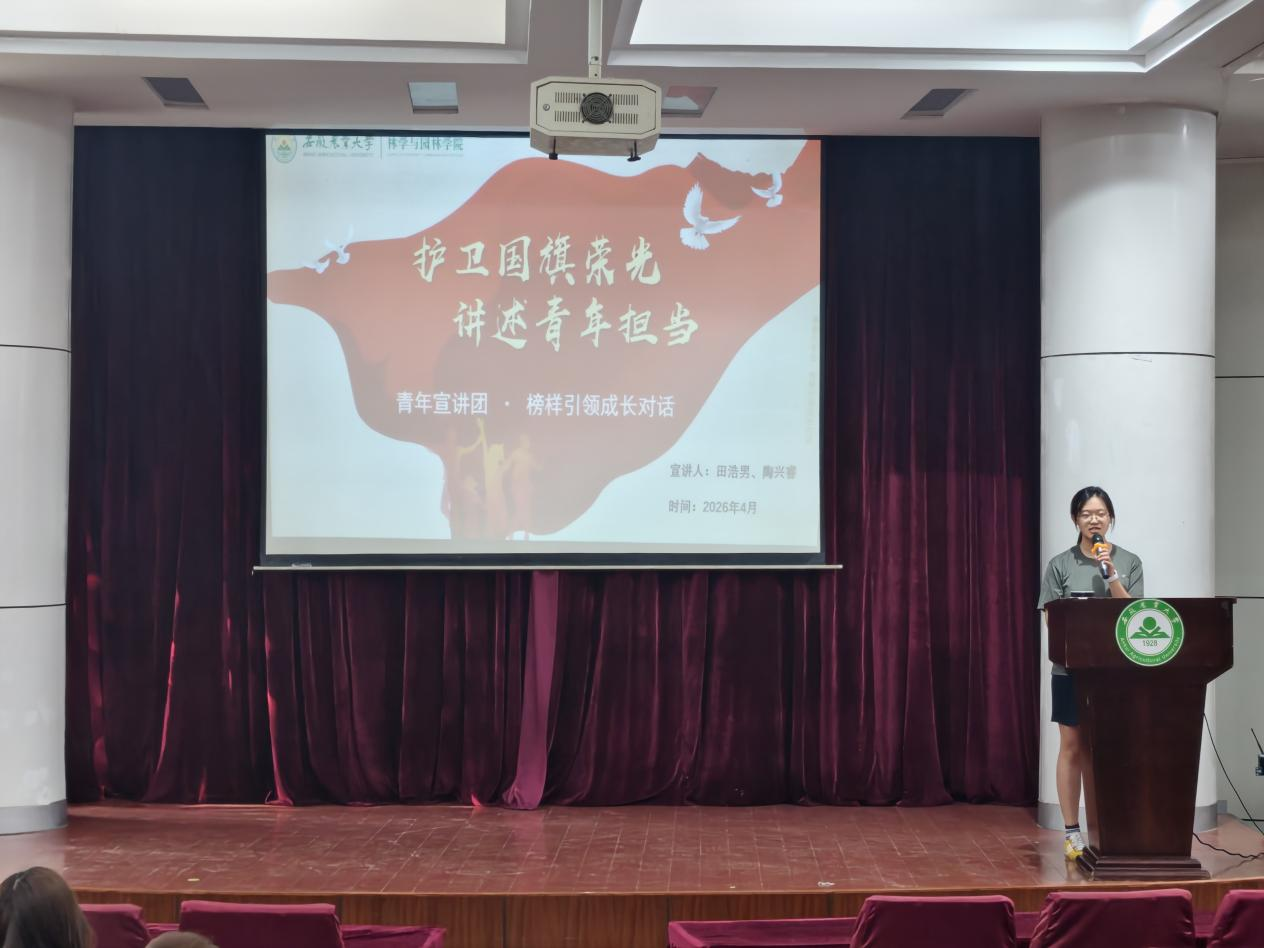 本网讯 为深入贯彻爱国主义教育,增强青年学子的国防意识与家国情怀,4月10日下午,在林学楼一楼报告厅举行了“护卫国旗荣光,讲述青年担当”青年宣讲团宣讲会。活动邀请校国旗护卫队优秀成员田浩男、陶兴睿两位同学担任主讲人,分享他们以青春守护国旗的亲身经历与深刻感悟。