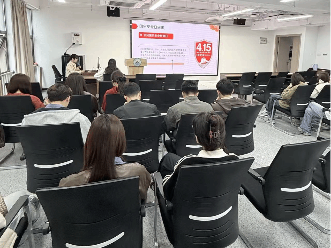 学院组织青年理论宣讲团发挥学科优势,面向全院学生开展国家安全教育专题宣讲,引导青年学子明底线、知敬畏、守规矩,切实增强维护国家安全的思想自觉与行动自觉。