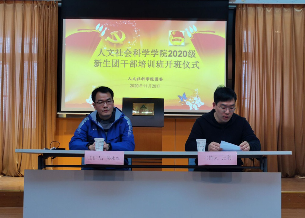 本网讯 为进一步学习贯彻习近平总书记关于青年工作的重要思想, 努力打造一支政治素质过硬、思想理论水平高、政策实践能力强、工作作风实的团干部队伍,11月20日下午,人文社会科学学院2020级新生团干部培训班在人文楼602报告厅开班。学院党委副书记吴永红出席了开班仪式。