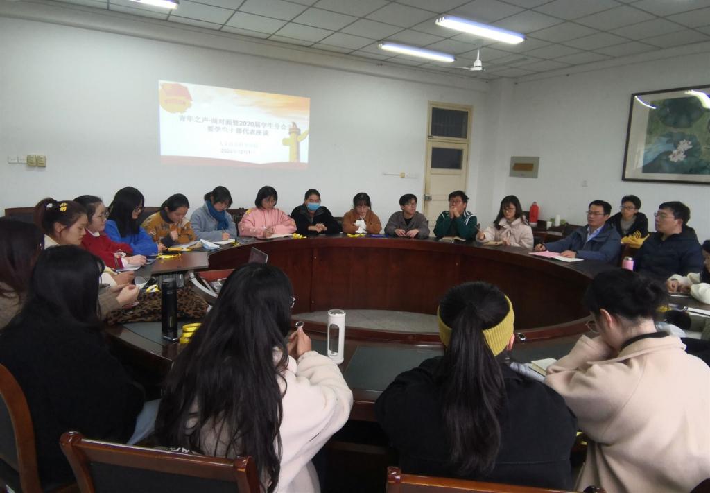 本网讯 为更好推动学生分会深化改革,支持和引导学生分会更好地服务青年成长成才,12月1日,人文社会科学学院“青年之声—我与书记面对面”暨学生分会学生干部座谈会在学院204会议室召开。学院党委副书记、副院长吴永红出席会议。