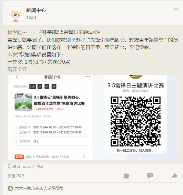 雷锋同志将有限的生命投入到无限的为人民服务中去,这种无私忘我的奉献精神值得我们颂扬和学习,希望林院学子们将雷锋精神努力的传承下去。