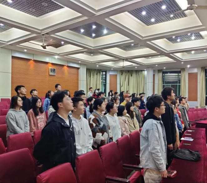 活动开始,全体起立合唱团歌。随后,谈应权在讲话中指出全体学员要加强政治理论学习,充分认识理论学习对自身成长成才的重大意义,用理论知识去指导实践,树立正确的政治方向,增强明辨是非的能力;要围绕“青年大学习”,不断加强自身的理想和信念教育,树立共产主义远大理想和建设有中国特色社会主义伟大国家的必胜信念,成长为中国特色社会主义事业的合格建设者和可靠的接班人;接着,团委老师带着同学们学习了2021年全国“两会”以及2021年中央一号文件等内容,指出青年是祖国的中坚力量,要时刻关注时政,跟进时代步伐,为学院、为学校、为祖国贡献一份力量。最后,学生代表就自身参与的社会实践活动或志愿服务工作展开分享,并发表了自己对此次活动的看法和感想。
