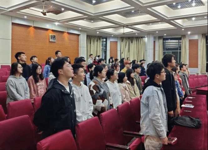 活动开始,全体起立合唱团歌。随后,谈应权在讲话中指出全体学员要加强政治理论学习,充分认识理论学习对自身成长成才的重大意义,用理论知识去指导实践,树立正确的政治方向,增强明辨是非的能力;要围绕“青年大学习”,不断加强自身的理想和信念教育,树立共产主义远大理想和建设有中国特色社会主义伟大国家的必胜信念,成长为中国特色社会主义事业的合格建设者和可靠的接班人;接着,团委老师同学们学习2021年全国“两会”以及2021年中央一号文件等内容指出青年是祖国的中坚力量,要时刻关注时政,跟进时代步伐,为学院、为学校、为祖国贡献一份力量。最后,学生代表就自身参与的社会实践活动或志愿服务工作展开分享,并发表了自己对此次活动的看法和感想。