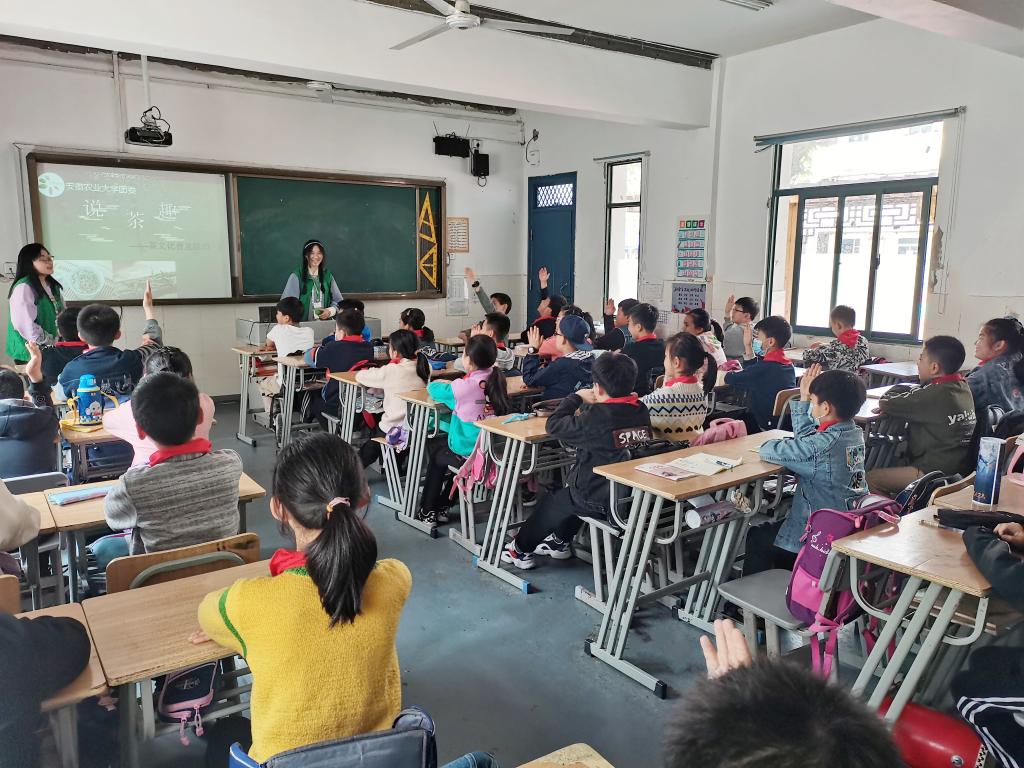 学院青年志愿者联合会组织开展“青春向党,为党献礼”手工制作大赛,同学们踊跃参赛,提交了多份做工精致、实用性高的手工艺品。近日,学院志愿服务团队走进合肥市滁州路小学开展“绿色课堂”支教活动,志愿者们结合茶学专业知识为四年级的小学生们上了一堂生动活泼的“说茶趣”,讲述了茶叶的起源、认识茶叶、六大茶类、饮茶的益处、茶艺表演、茶具等知识,受到同学们的热烈欢迎。同时,志愿者们为小学生们送去了团旗团徽团歌的故事,讲述了中华儿女为了民族的解放、人民的幸福,聚集在一起,团结在伟大的共产主义旗帜下,点燃革命的火炬,奋勇前进的青春故事。志愿者们表示,青年学子要坚定理想信念,增强服务意识,发扬奉献精神,不忘初心、继续前进。