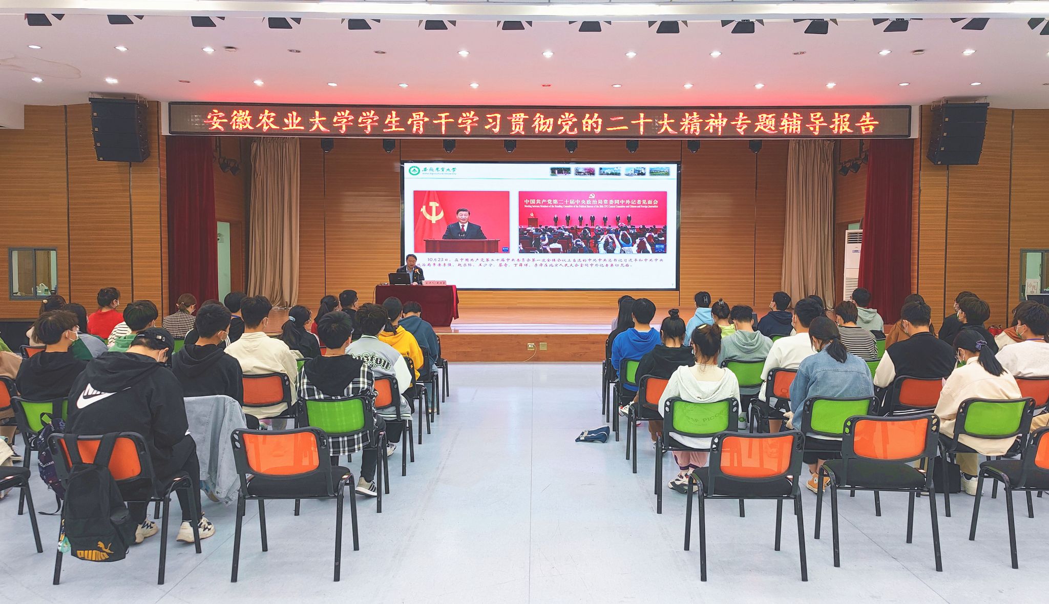 会上,黄洪雷从党的二十大以及大会报告的重大意义、党的二十大报告的主要内容和学深悟透践行党的二十大精神等三个方面进行了深刻阐述和深入解读;通过“数”说二十大报告内容,提纲挈领地带领广大同学准确把握报告的主线脉络。辅导报告深入浅出、重点突出、解读精准、学理性强,同学们很受启发、获益匪浅。