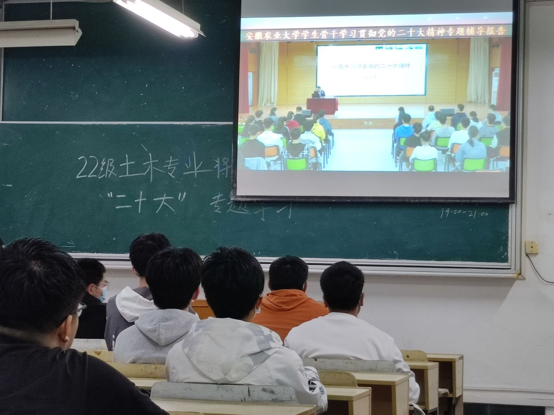 活动分两个阶段进行。在集中学习阶段,通过线上收看人文社会科学学院院长黄洪雷教授所作学习宣传党的二十大精神专题辅导报告。报告从党的二十大以及大会报告的重大意义、党的二十大报告的主要内容和学深悟透践行党的二十大精神等三个方面进行了深刻阐述和深入解读。辅导报告深入浅出、重点突出,同学们很受启发、获益匪浅。在座谈讨论阶段,同学们积极分享自己的感悟与心得,大家纷纷表示,作为新时代青年,需以志为先,做到理想远大、信念坚定,当前练就过硬本领,未来为服务机械强农,全面推进中华民族伟大复兴贡献力量。