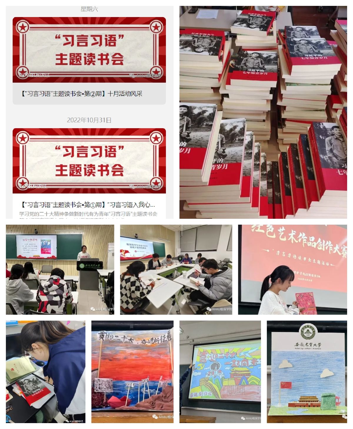 育人的根本在于育德。思想政治工作的根本是做人的工作。既要将解决思想问题与实际问题相结合,更要加强思想上的引领。院党委专门印发通知,面向全院各党支部、院级学生组织、各班级团支部,要求在学习宣传贯彻党的二十大精神中,广泛开展“习言习语”主题读书分享会,并集中购买发放《论党的青年工作》《习近平与大学生朋友们》《习近平的七年知青岁月》等书籍。各级党团组织通过个人自学、组织研讨、线下分享、线上诵读、手工作品创作比赛等多种方式,共计先后开展了30余场系列活动。读书会活动参与面广、形式丰富、内容深刻,将理论性、知识性与趣味性有机融合,将主导性与主体性有机结合,寓教于乐,润物无声,进一步教育引导青年学生汲取思想伟力、感悟领袖魅力,激励了青年学生争做有理想、敢担当、能吃苦、肯奋斗的新时代好青年。“通过本次活动,让我清楚明白自己要做起而行之的行动者,不做坐而论道的清谈者,要当攻坚克难的奋斗者,不当怕见风雨的泥菩萨,希望自己在摸爬滚打中增长才干,在层层历练中积累经验,始终跟着党的号召走。”一名同学在参加交流活动中如是说。(丁放、张梦雅、张小龙 )